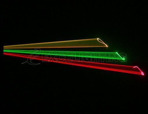 • Un laser accrocheur Tricolore RGY utilisant des balayeurs de haute qualité. • Mouvements sans à coups et continus, plus de 100 effets volumétriques, formes géométriques, tunnels, plafonds … • Shows laser préprogrammés merveilleux adaptés à toute utilisation : bar, discothèques, DJ mobiles etc. • Laser de classe 3B basé sur un laser 50mW Vert 532nm et 150mW Rouge 650nm. • Plusieurs modes de fonctionnement : o Contrôlé par DMX avec 9 canaux pour une utilisation complète o Autonome : activation sonore (par micro interne) ou automatique o Télécommande IR : Contrôle par télécommande à infrarouge.